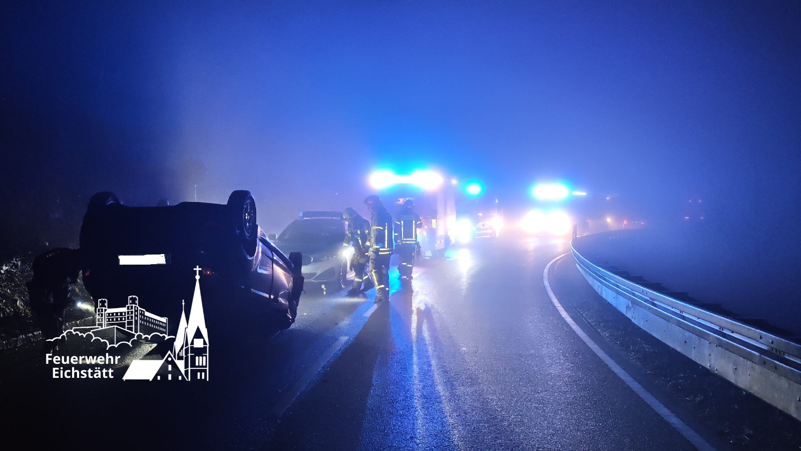 Wir wurden auf die B13 Richtung Weißenburg alarmiert. Laut Mitteilung hatte sich ein PKW alleinbeteiligt überschlagen und war auf dem Dach zum liegen gekommen. Der Fahrer konnte sich eigenständig aus dem Fahrzeug befreien.